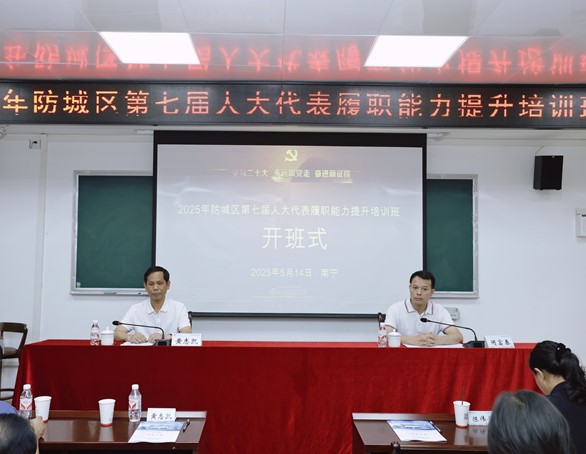 2025年5月15日,防城区第七届人大代表履职能力提升培训班在我院开班。防城港市防城区人大常委会副主任黄志凯出席开班式并作动员讲话,我院院长闭富春出席开班式并致辞。