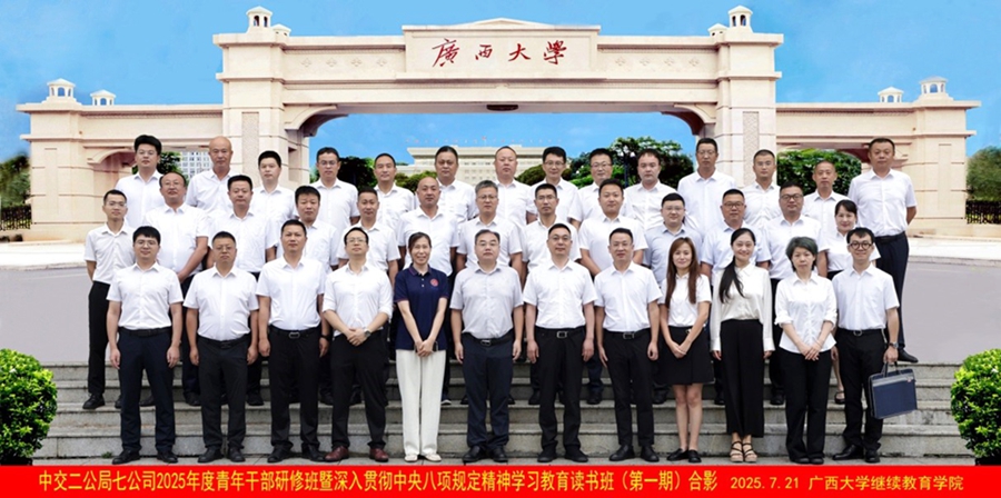 2025年7月21日,中交二公局第七工程有限公司2025年度青年干部研修班暨深入贯彻中央八项规定精神学习教育读书班(第一期)在广西大学雷速体育开班。中交二公局第七工程有限公司党委书记、执行董事张根合,广西大学雷速体育副院长徐华出席开班式并讲话,中交二公局第七工程有限公司人力资源部经理孙超主持开班式。