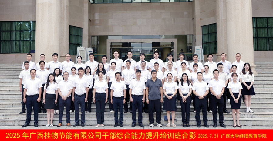 本次培训班由广西桂物节能有限公司主办,广西大学承办,为期3天,广西桂物节能有限公司共46名中层管理人员参加本次培训。