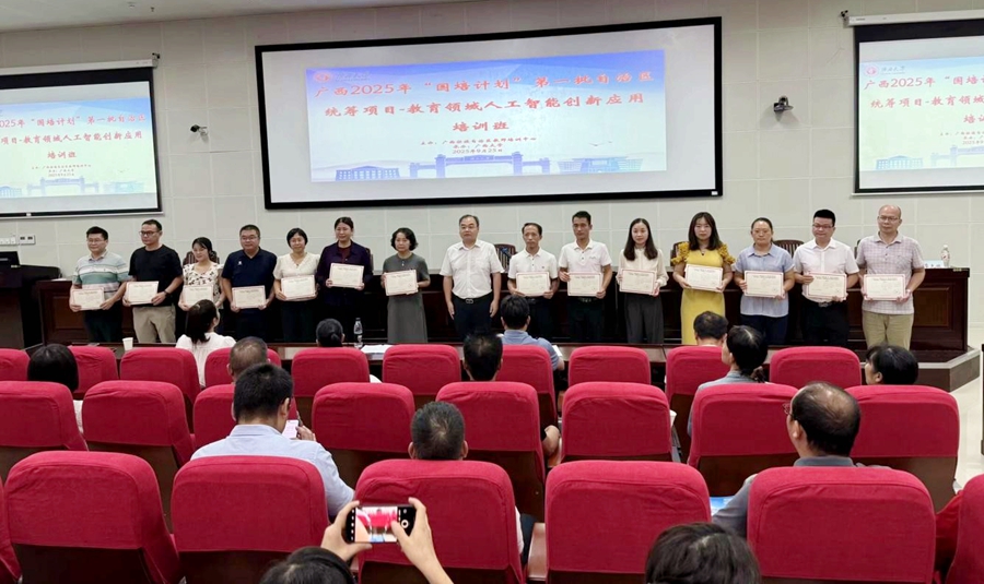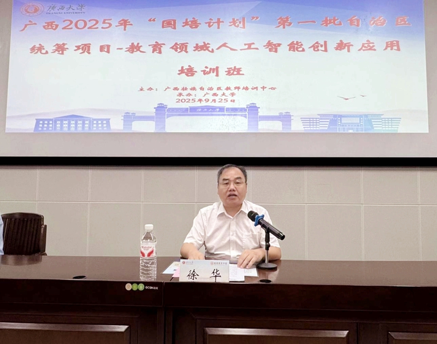 9月25日,广西2025年“国培计划”第一批自治区统筹项目——教育领域人工智能创新应用培训班在我校结业,广西大学雷速体育副院长徐华出席结业式并致辞,广西大学雷速体育梁君华老师主持结业式。