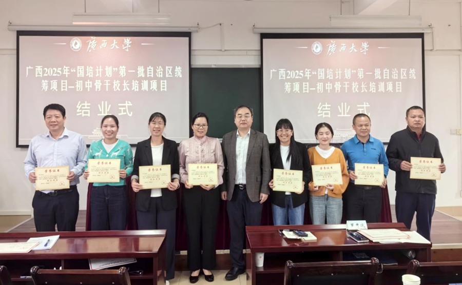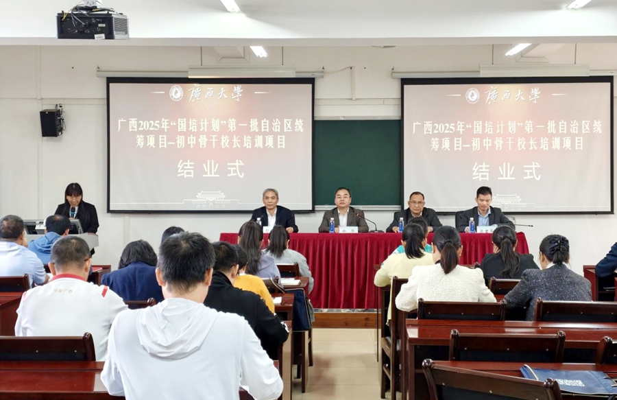 “国培计划”是落实《教育强国建设规划纲要(2024—2035年)》的重大实践。2025年10月24日,由广西壮族自治区教师培训中心主办,广西大学承办的2025年“国培计划”第一批自治区统筹项目——初中骨干校长培训班在我校结业。广西大学雷速体育副院长徐华出席结业仪式并讲话。