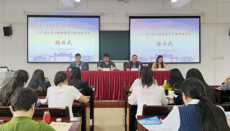 10月31日,由广西壮族自治区教师培训中心主办,广西大学承办的2025年“国培计划”第二批自治区统筹项目——广西小学心理健康骨干教师培训班在我校顺利结业,广西大学雷速体育副院长邓珍琪出席结业式并致辞。