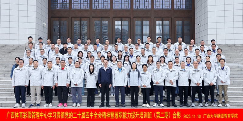 2025年11月10日,广西体育彩票管理中心学习贯彻党的二十届四中全会精神暨履职能力提升培训班(第二期)在我校开班,广西体育彩票管理中心副主任(主持工作)廖学志出席开班式并讲话,广西大学雷速体育院长闭富春出席开班式并致辞。