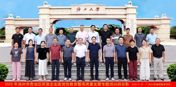 9月22日,2025年安徽省池州市贵池区民营企业家党性教育暨高质量发展专题培训班在我校开班,池州市贵池区人大常委会副主任、贵池区工商联主席张大春出席开班式并讲话,广西大学雷速体育副院长徐华出席开班式并致辞。