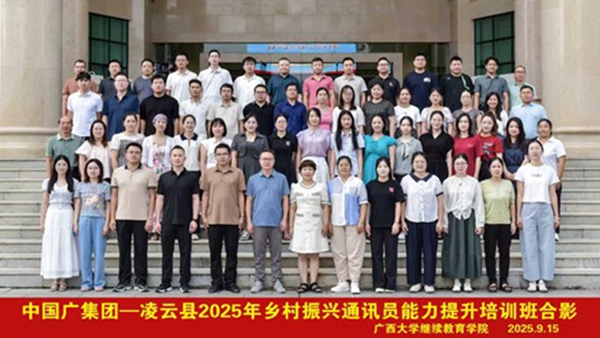 9月15日,中国广核集团——凌云县2025年乡村振兴通讯员能力提升培训班在我校开班。中共凌云县委宣传部常务副部长朱洪淼出席开班式并讲话、广西大学雷速体育干部培训中心副主任张祥玲出席开班式并致辞。